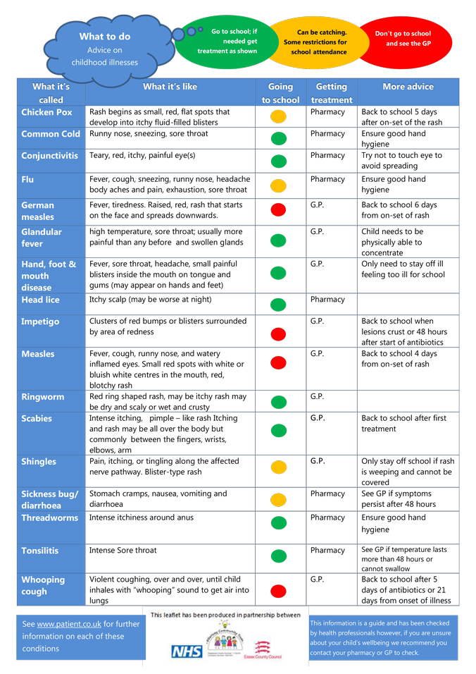 Children should not attend school if they are too ill to do so. If you are in any doubt please see this handy list of childhood illnesses and the latest NHS advice.